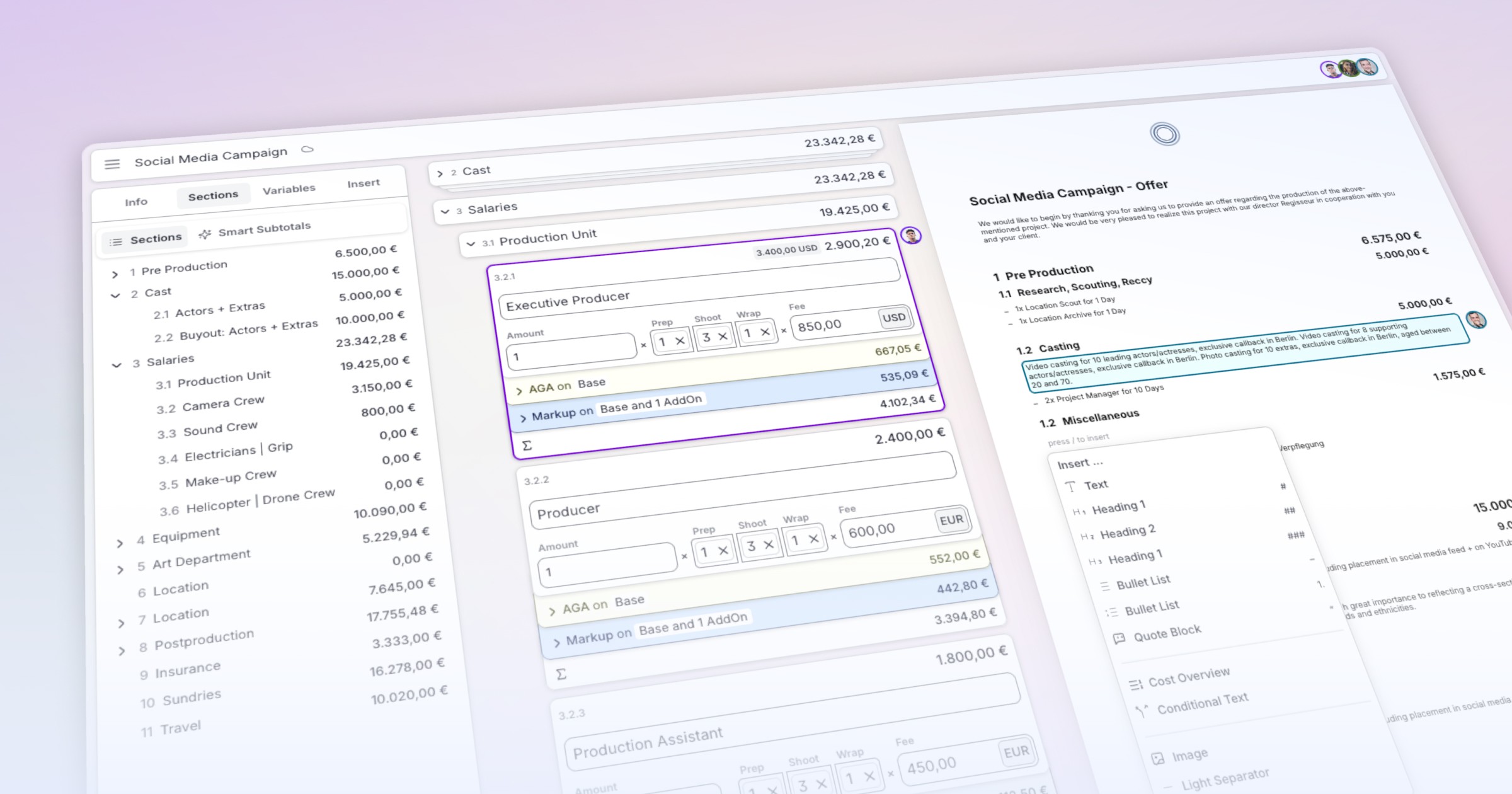 Back in 2018, I was a producer at a company called CHUNK. The industry standard in Germany was rigid: we calculated budgets in the massive, complex GWA Excel Sheet. But the formal offer, the Anschreiben , was a Word document.