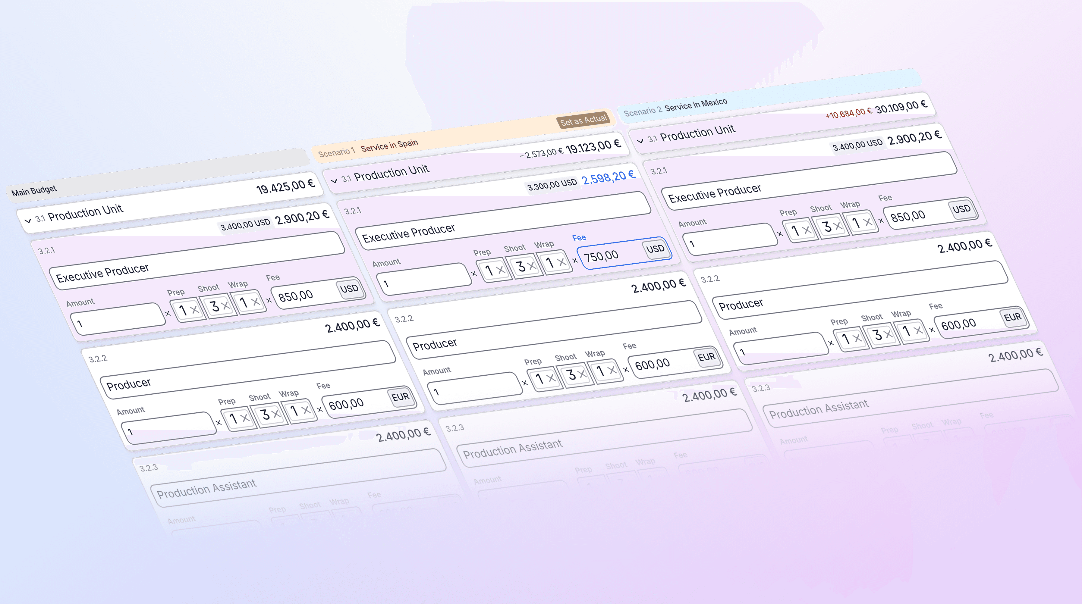 Production is unpredictable. Budgets shift. Saturation lacks native tools for managing multiple budget realities, forcing you to duplicate files and manage separate versions when locations or schedules change.