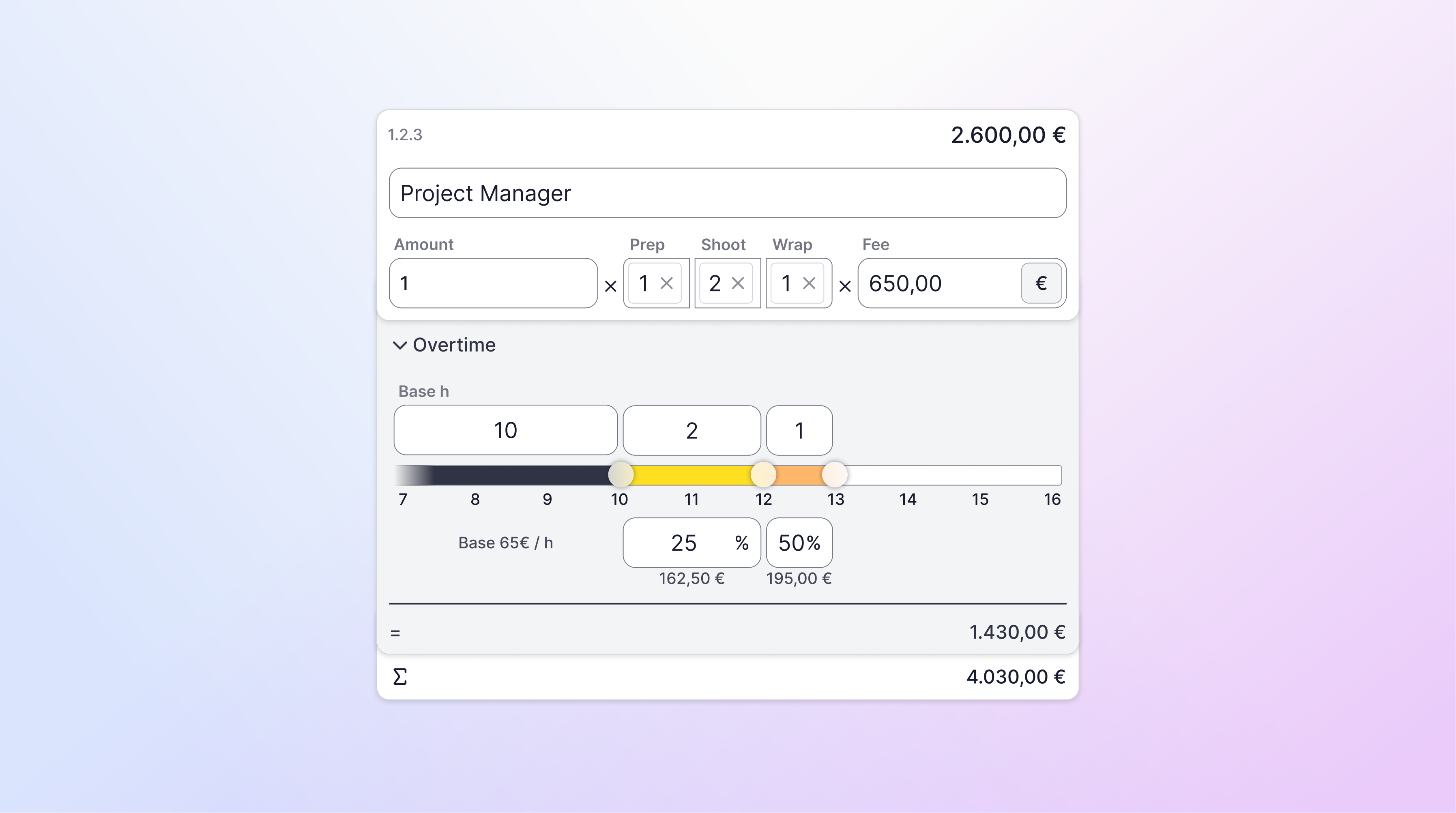 This allows producers to track markups and overtime regardless of where the line items sit in the structure.